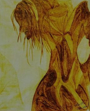 Composition: rouille, huile de palme, bissap sur toile malicane fond chaux-vive.