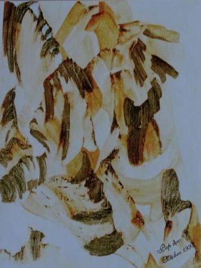 Composition: rouille liquide, figue de barbarie, huile de palm, bissape ¨Oseille¨. Sur toile de malicane peinte à la chaux vive en couleur de fond.